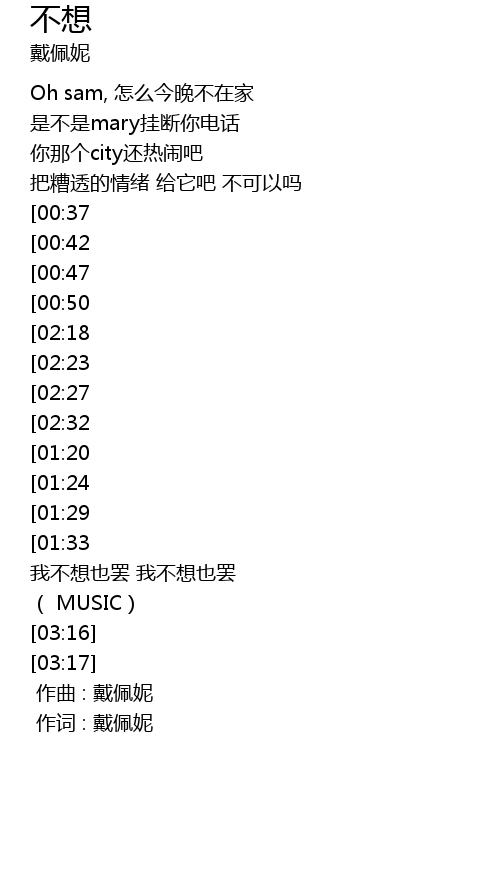 | [00:00.00] | 作曲 : 戴佩妮 |