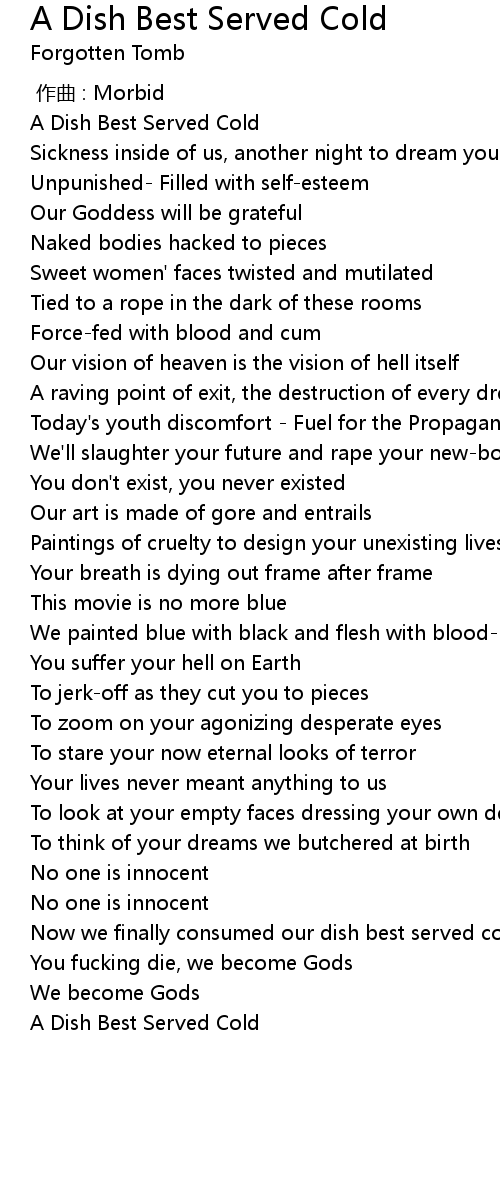 | Song | A Dish Best Served Cold |