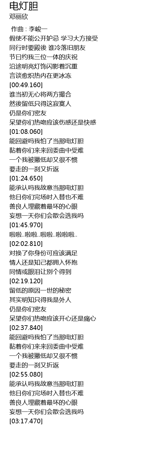 | [02:55.610] | 能承认吗我故意当那电灯胆 |
