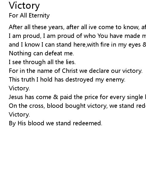 | For in the name of Christ we declare our victory. | |