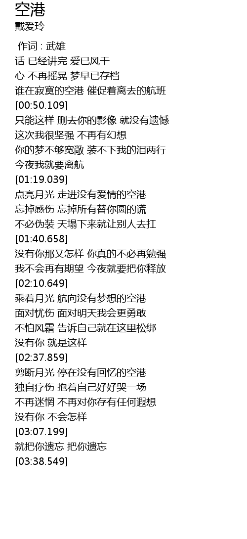 | [02:38.600] | jiǎn duàn yuè guāng tíng zài méi yǒu huí yì de kōng gǎng |