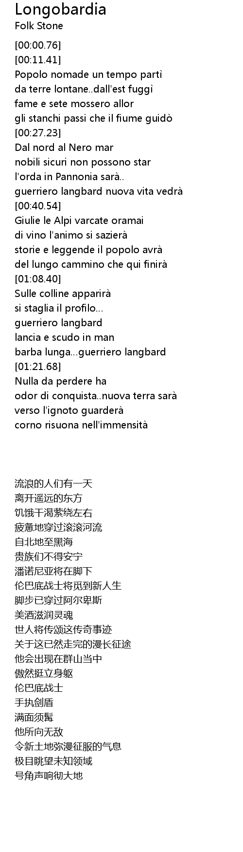 | [00:36.57] | guerriero langbard nuova vita vedrà |
