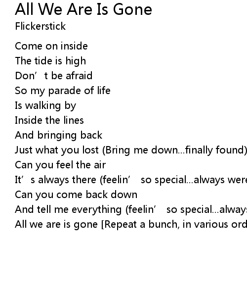 | All we are is gone [Repeat a bunch, in various orders] |