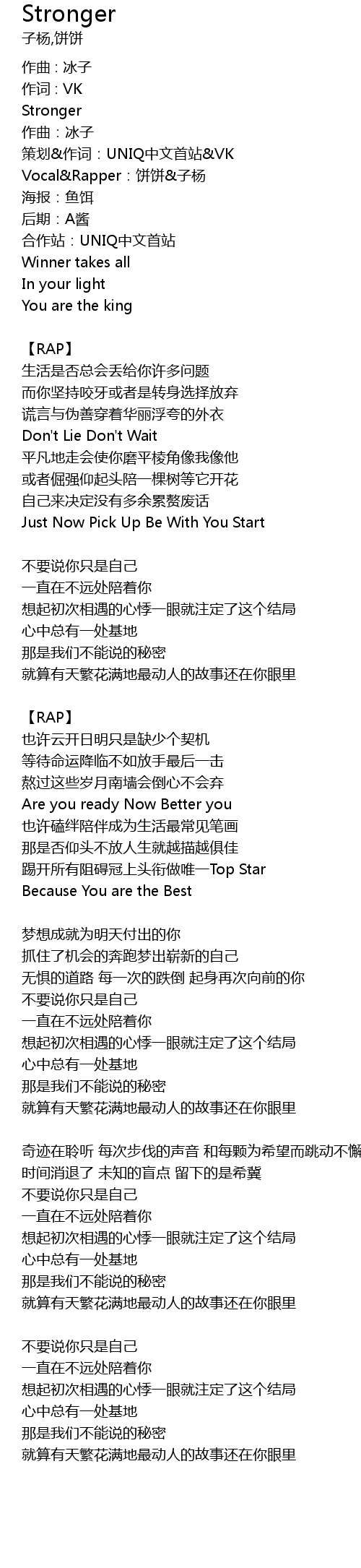 | 策划&作词:UNIQ中文首站&VK | |