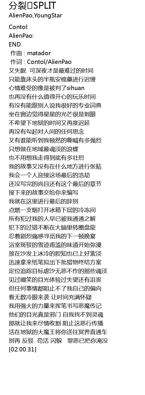 | [00:01.000] | 作词 : Contol/AlienPao |