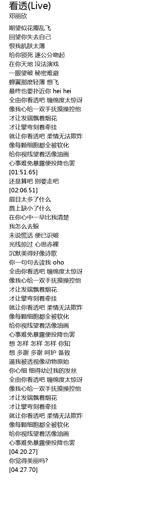 | [01:32.69] | 就让你看透吧 柔情无法欺炸 |