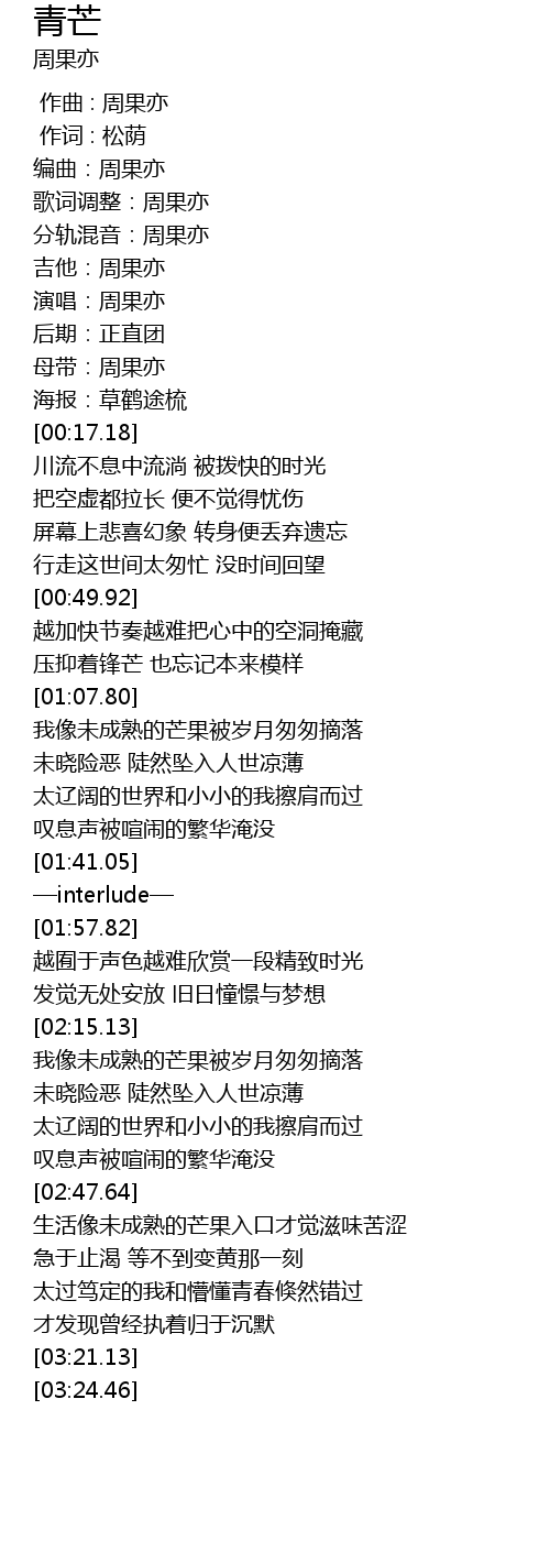 | [02:48.09] | 生活像未成熟的芒果入口才觉滋味苦涩 |