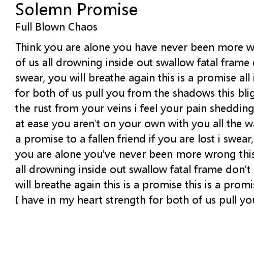 Think you are alone you have never been more wrong this affliction kills a piece of us all drowning inside out swallow fatal frame don't hold your breath i swear, you will breathe again this is a promise all i have in my heart strength for both of us pull you from the shadows this blight wont take your life scour the rust from your veins i feel your pain shedding mortal remains put your mind at ease you aren't on your own with you all the way fight this together this is a promise to a fallen friend if you are lost i swear, we will meet again think you are alone you've never been more wrong this affliction kills a piece of us all drowning inside out swallow fatal frame don't hold your breath i swear, you will breathe again this is a promise this is a promise all |