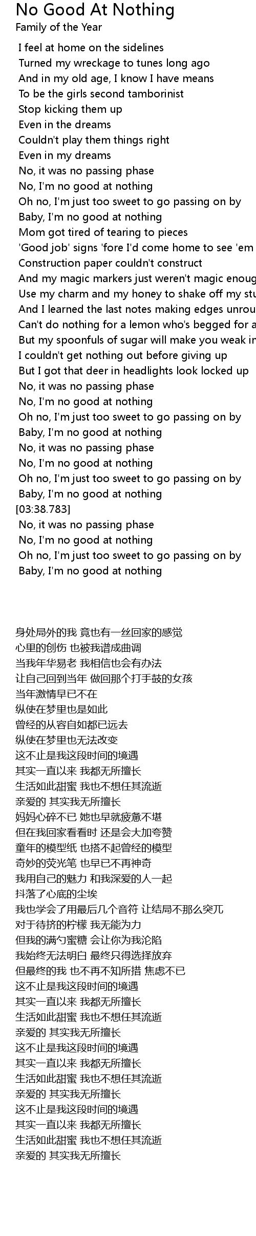 No, I'm no good at nothing |