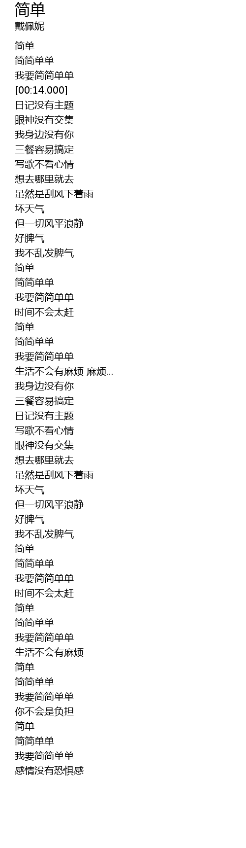 | [00:02.480] | 我要简简单单 |