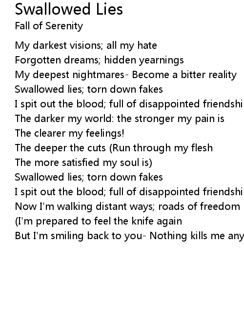 Swallowed lies; torn down fakes |