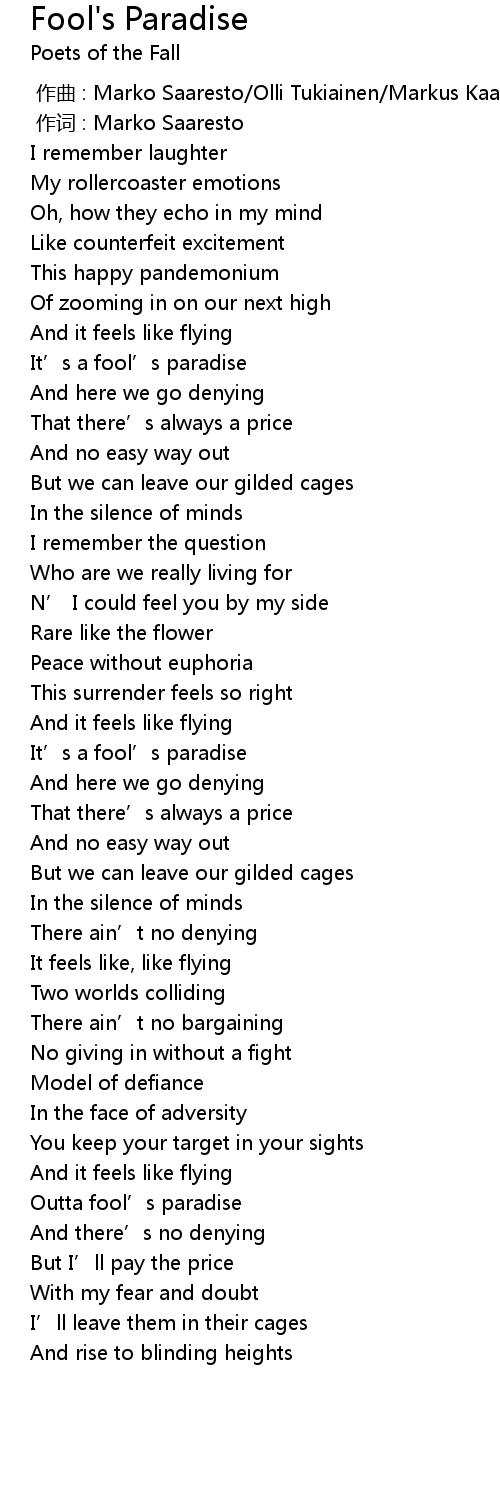 | [00:00.000] | zuo qu : Marko Saaresto Olli Tukiainen Markus Kaarlonen |