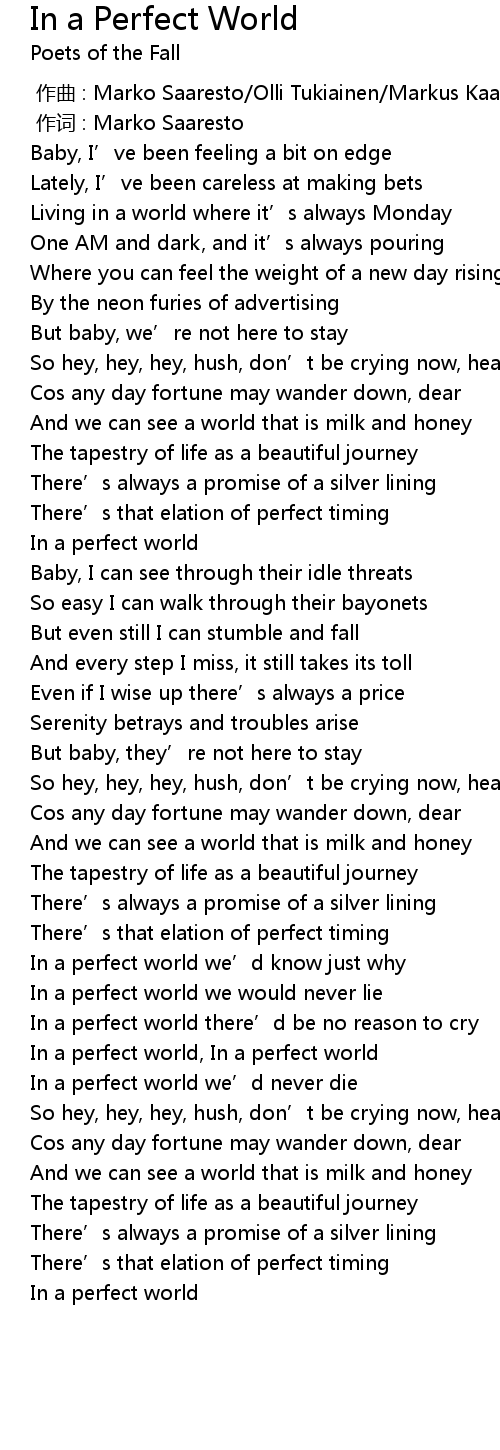 | [03:03.42] | In a perfect world there' d be no reason to cry |