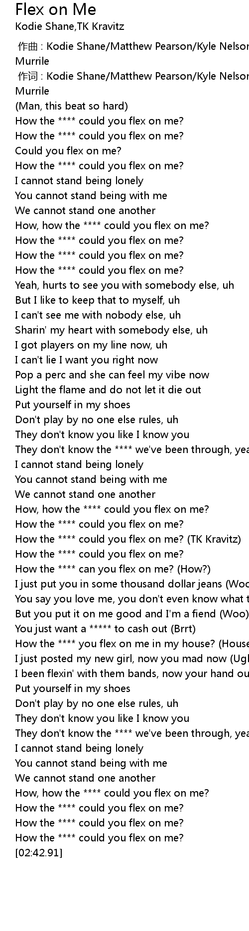 | [01:39.09] | How the **** can you flex on me? (How?) |