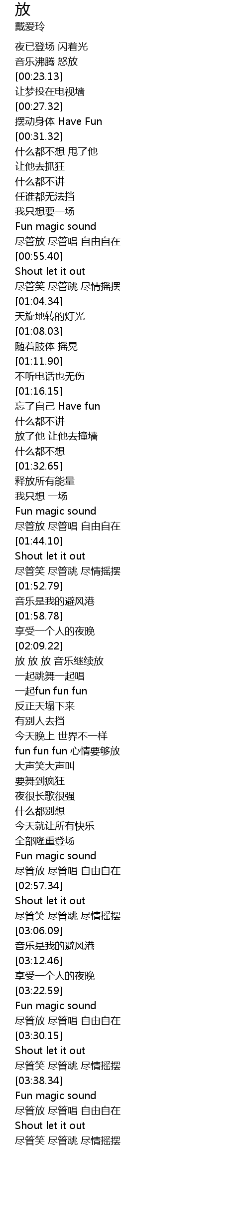 | [03:41.43] | 尽管放 尽管唱 自由自在 |