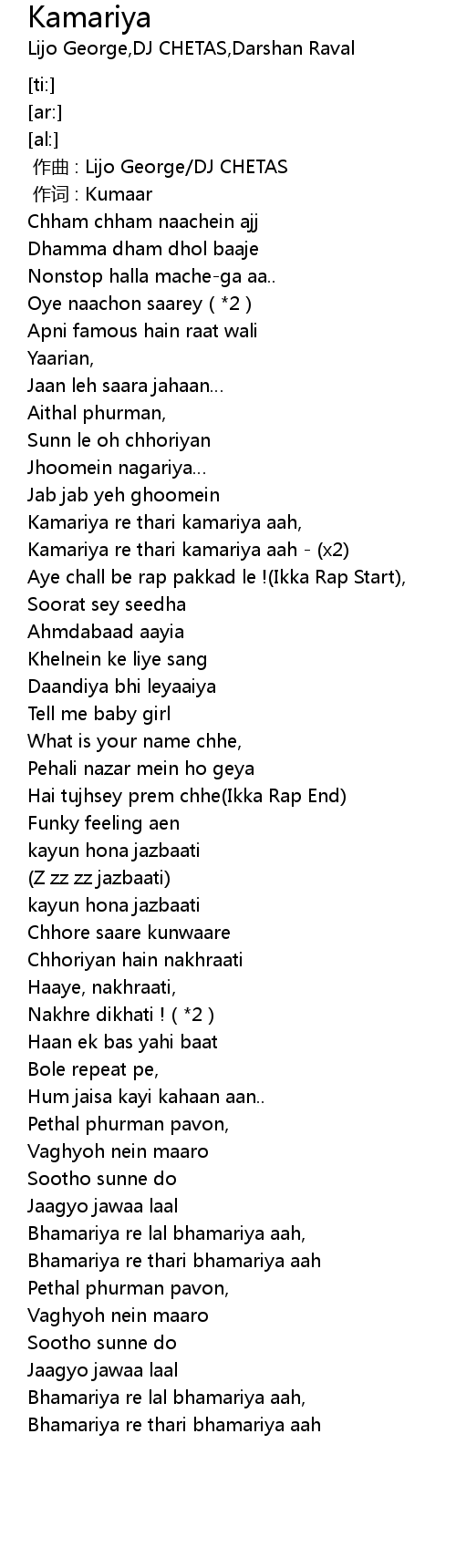 | [01:49.63] | Kamariya re thari kamariya aah - (x2) |