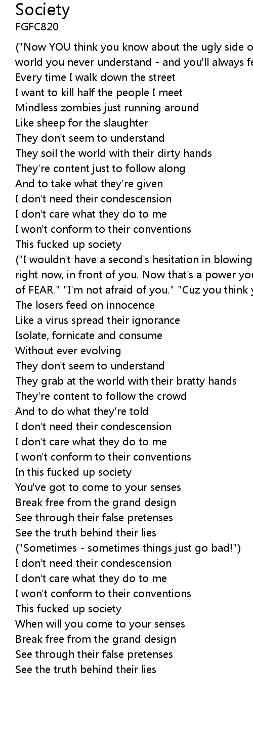 ("Now YOU think you know about the ugly side of life, but you don't. This is a world you never understand - and you'll always fear, but you don't understand.") |
