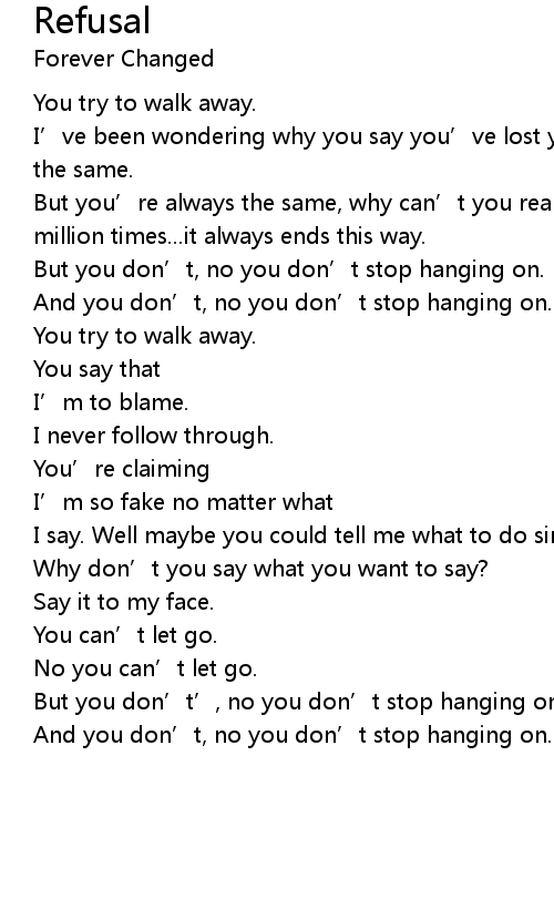 | But you' re always the same, why can' t you realize you' ve said this a million times... it always ends this way. | |
