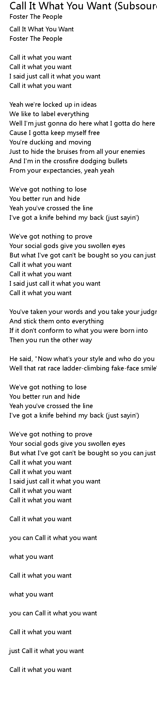 Call It What You Want (Subsource Remix) Lyrics