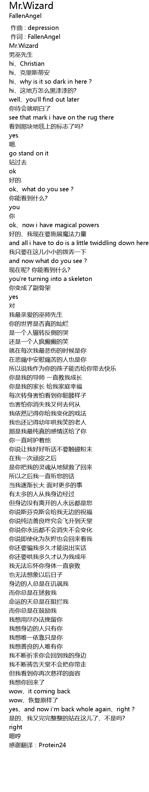| [00:25.159] | 我最亲爱的巫师先生 |
