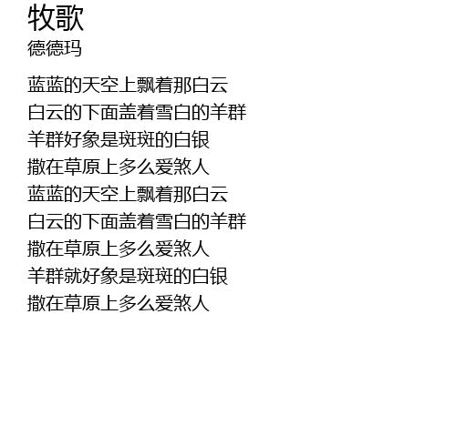 | [00:31.700] | 蓝蓝的天空上飘着那白云 |