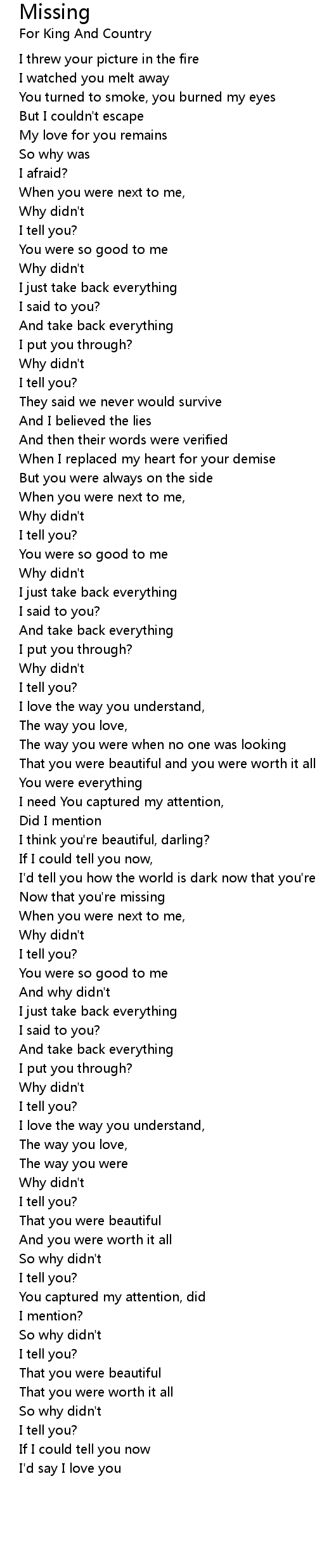 I'd tell you how the world is dark now that you're missing |