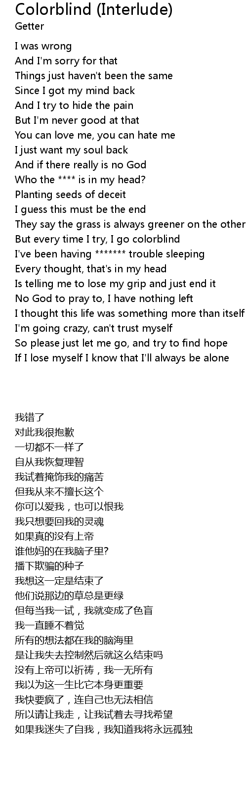 | [01:28.491] | But every time I try, I go colorblind |