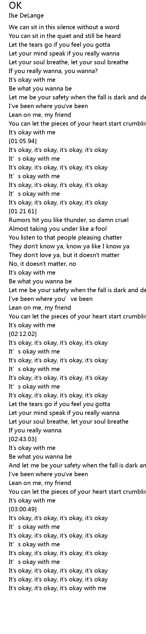 | [03:17.81] | It's okay, it's okay, it's okay, it's okay |