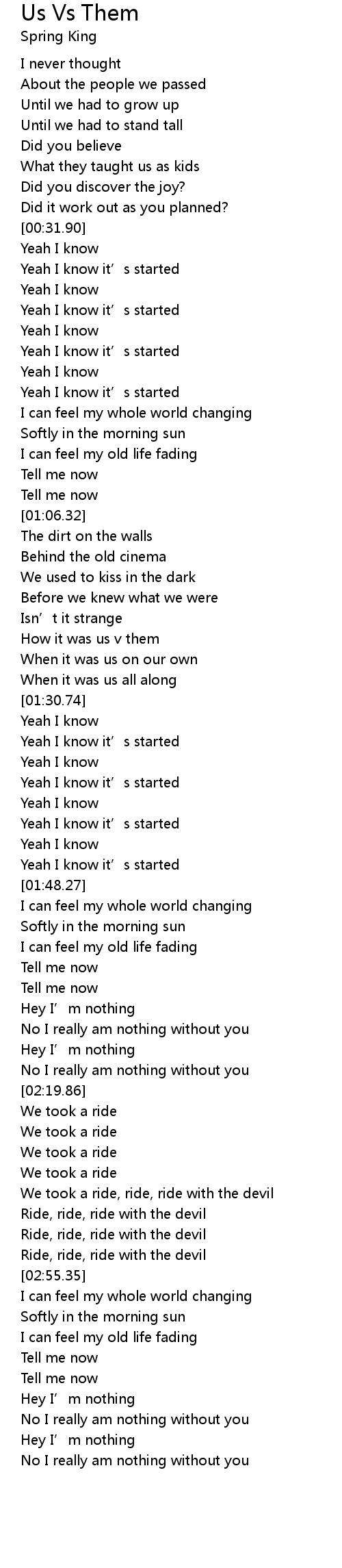 | [01:42.61] | Yeah I know it' s started |