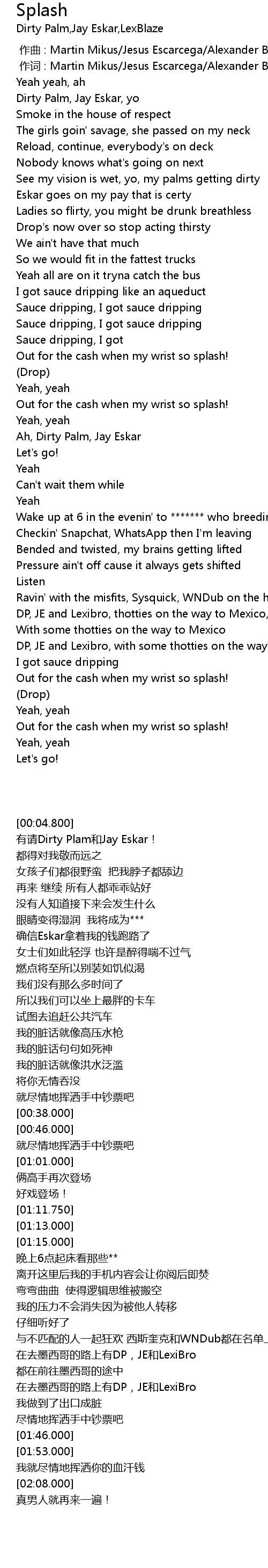 | [01:45.000] | Out for the cash when my wrist so splash! |