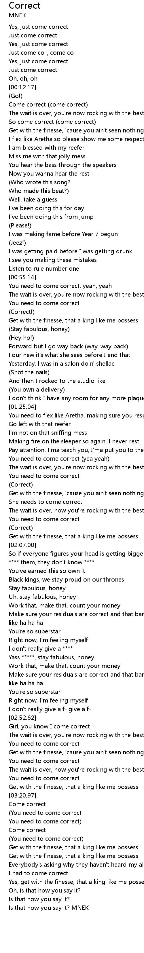 | [00:55.44] | You need to come correct, yeah, yeah |
