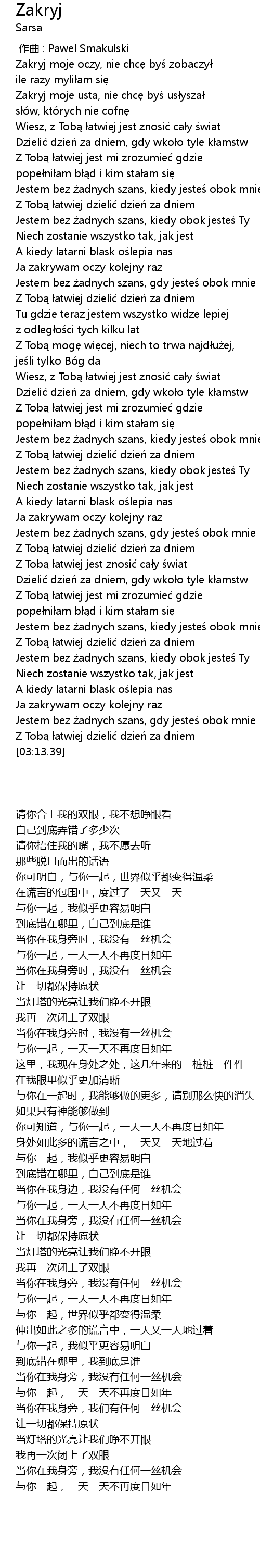 | [03:01.54] | Ja zakrywam oczy kolejny raz |