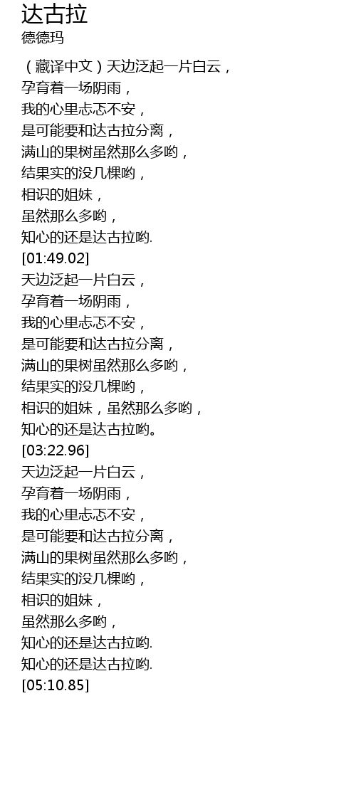 | [03:18.31] | 知心的还是达古拉哟。 |