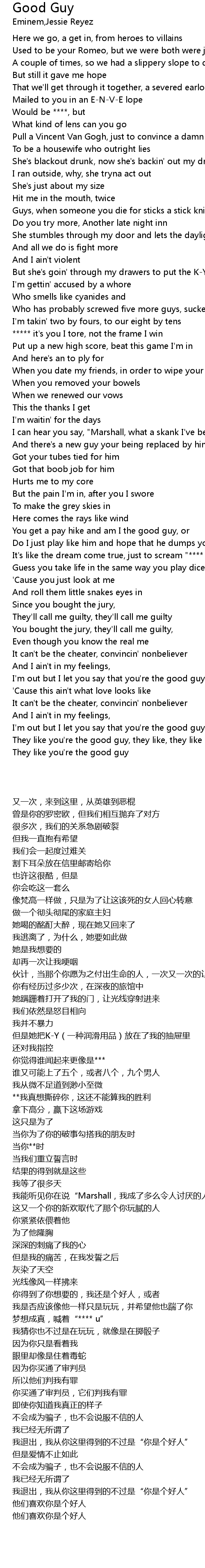 | [01:50.69] | I'm out but I let you say that you're the good guy |