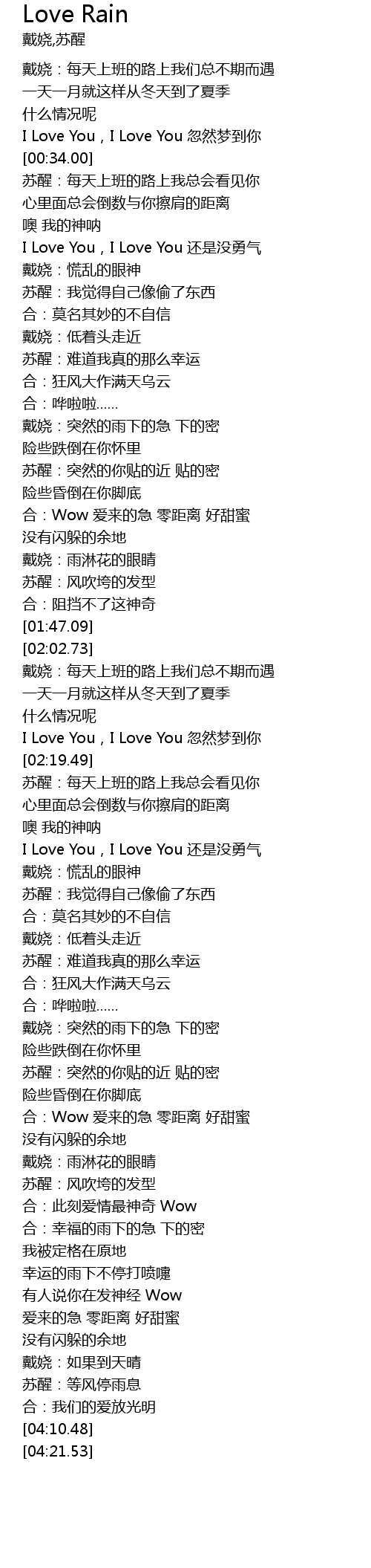 | [01:29.21] | 合:Wow 爱来的急 零距离 好甜蜜 |