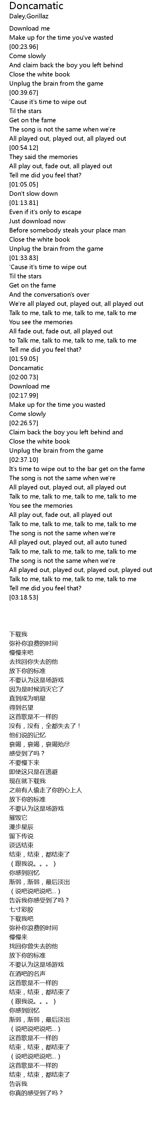 | [03:02.35] | All played out, played out, all auto tuned |