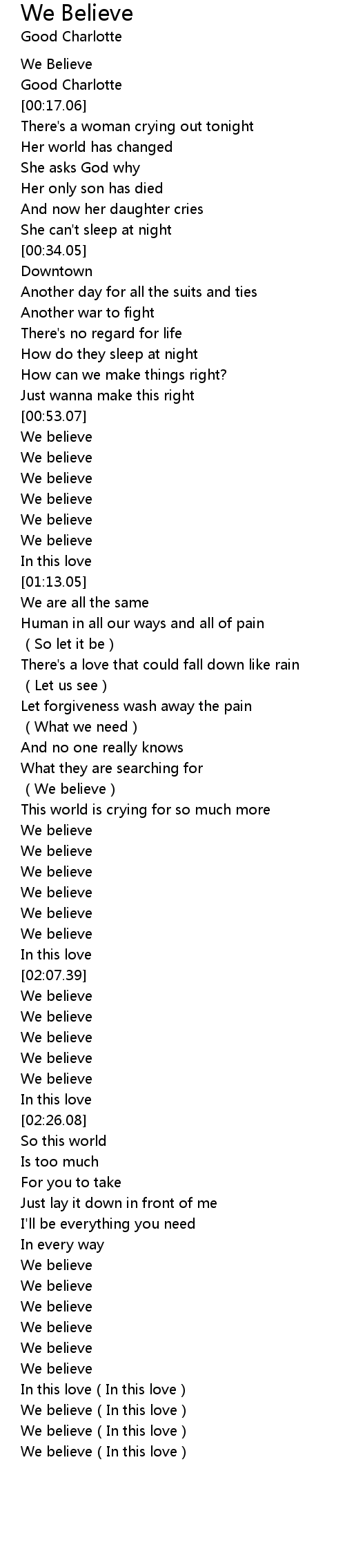 | [00:01.57] | We Believe |