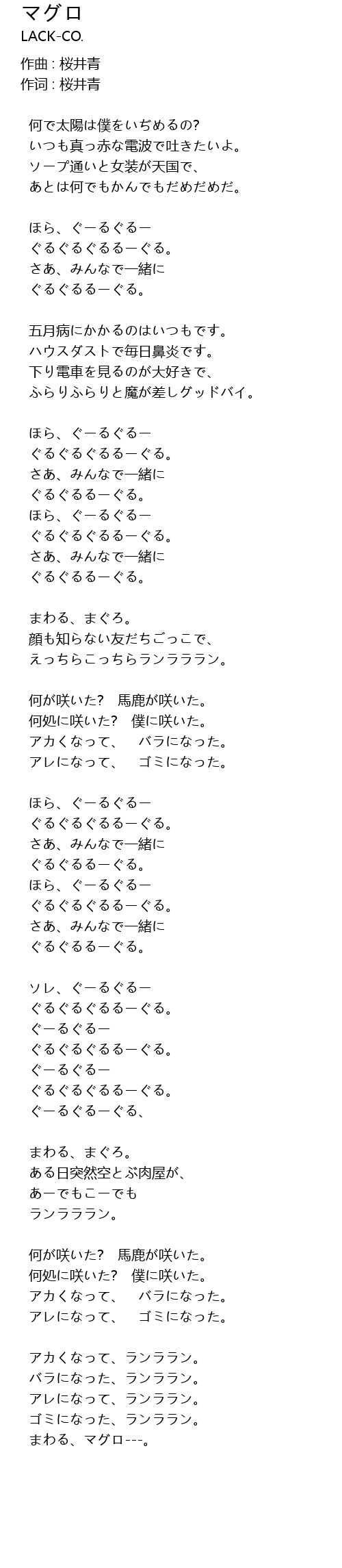 作词 : 桜井青 |