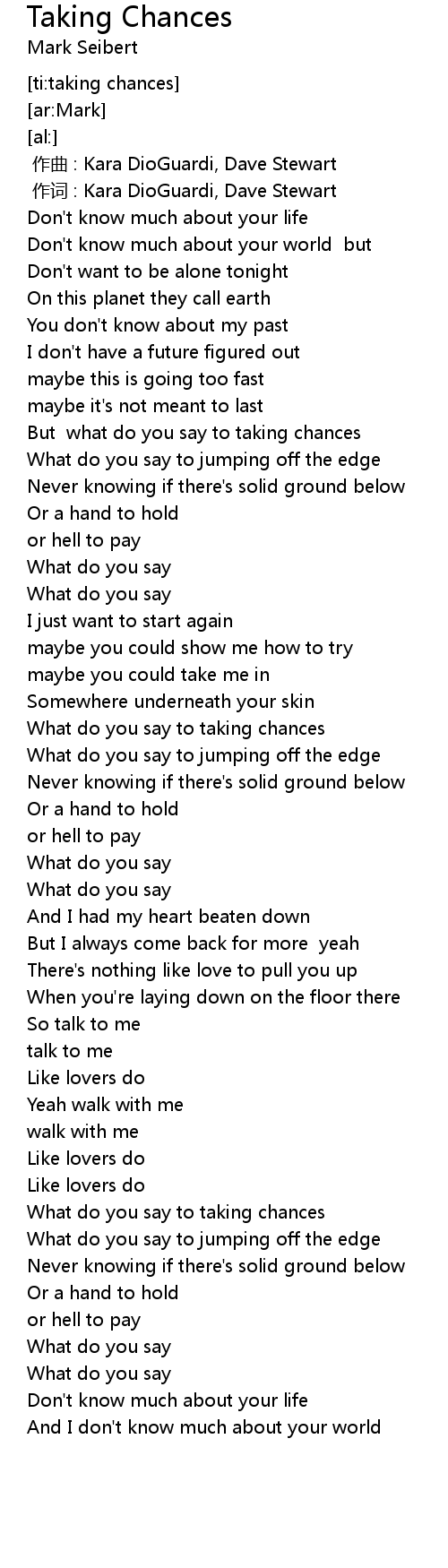 | [ti:taking chances] | |