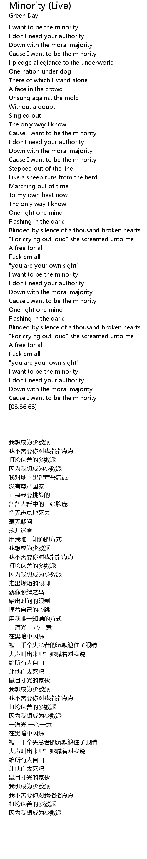 | [03:21.36] | I want to be the minority |