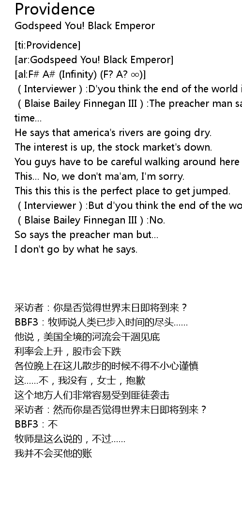 | [00:20.76] | (Blaise Bailey Finnegan III):The preacher man says it's the end of time... |
