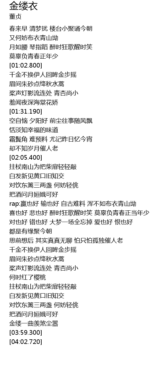 | [03:48.350] | 金缕一曲羡煞尘嚣 |