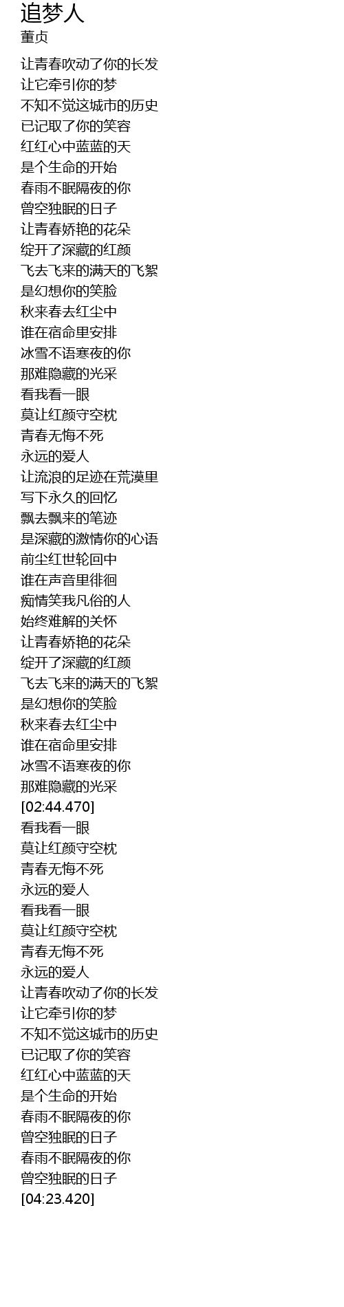 | [03:43.070] | 让青春吹动了你的长发 |