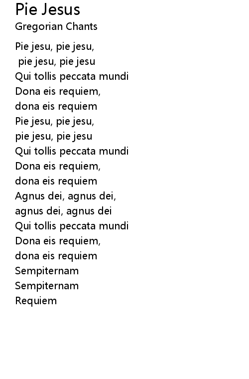 | Song | Pie Jesus |