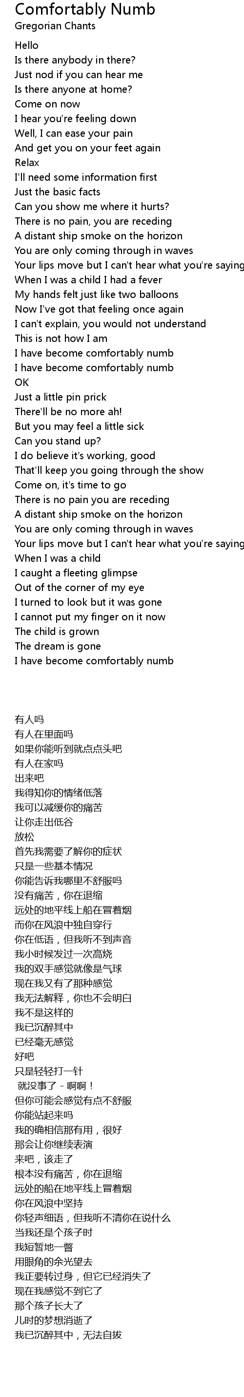 I have become comfortably numb |