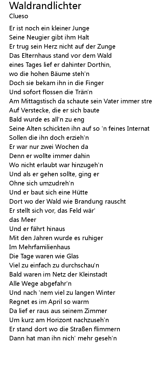 | [02:40.83] | Da lief er raus aus seinem Zimmer |