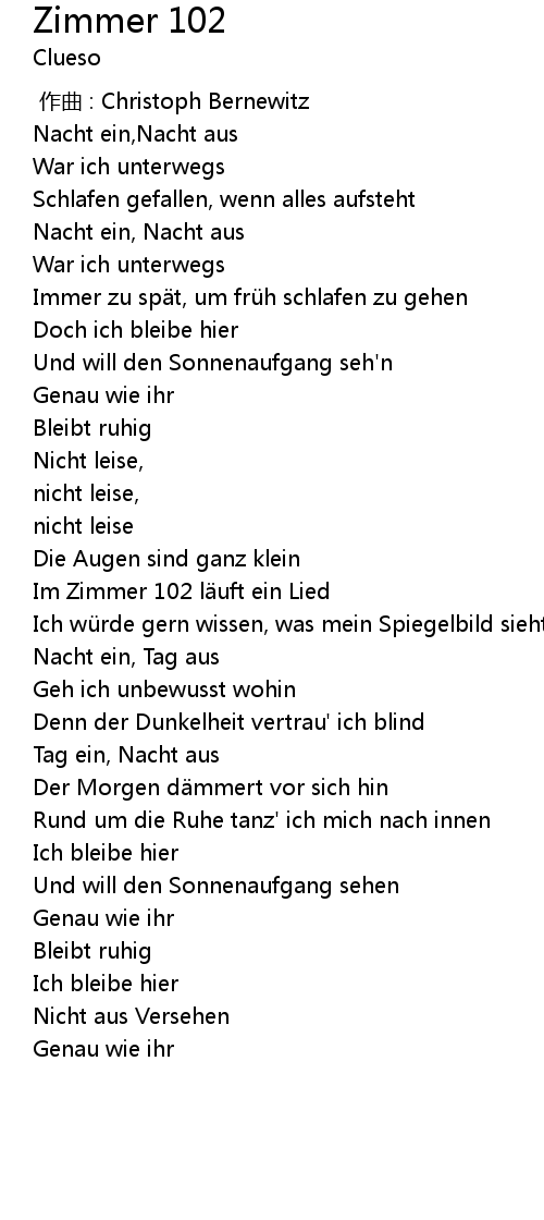 | [02:07.53] | Im Zimmer 102 l uft ein Lied |
