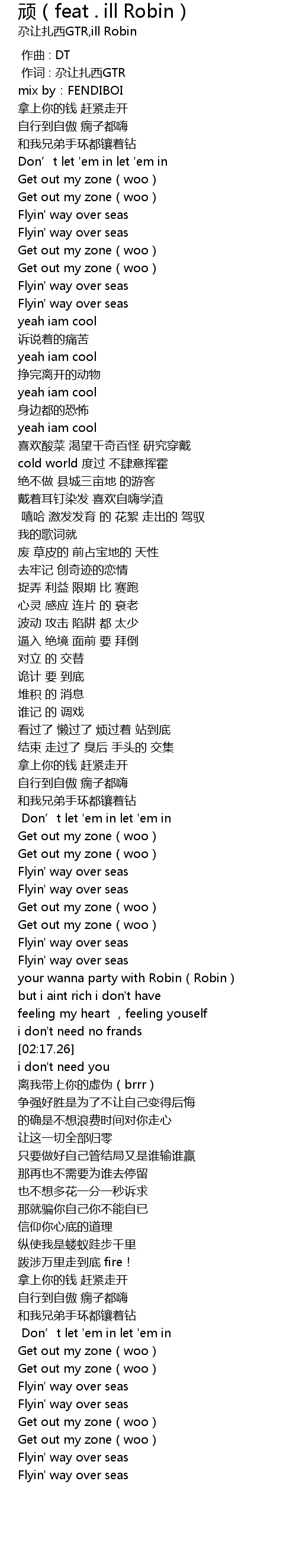 | [02:58.04] | Get out my zone woo |