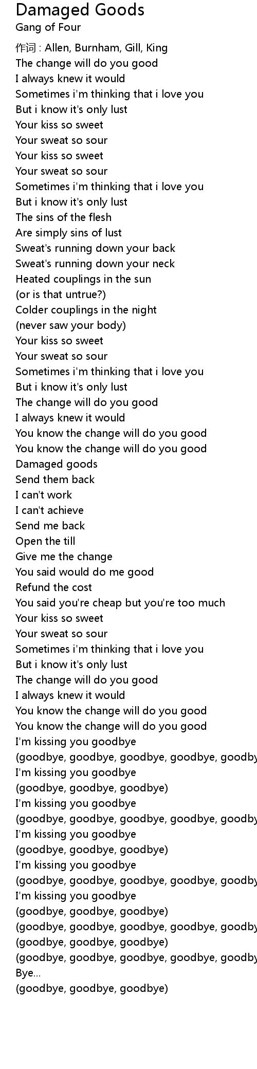 | (goodbye, goodbye, goodbye, goodbye, goodbye) | |