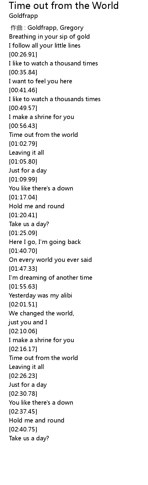 | [00:00.00] | 作曲 : Goldfrapp, Gregory |